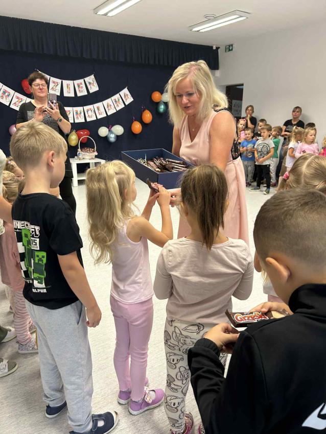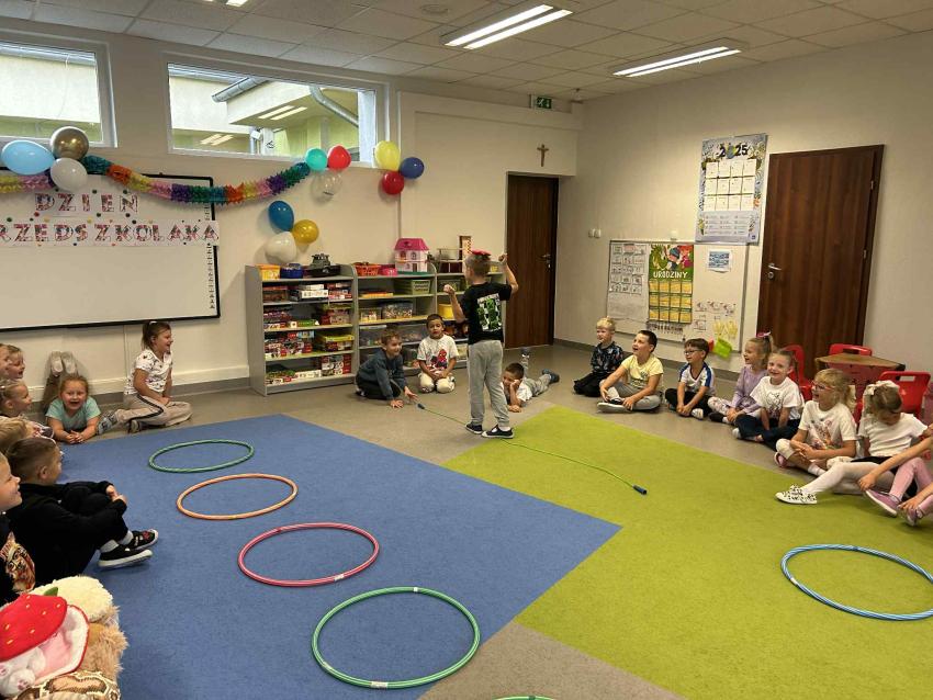 19 września w naszym przedszkolu obchodziliśmy radosne święto ? Dzień Przedszkolaka. Dzieci wspólnie zaśpiewały piosenkę Jestem sobie przedszkolaczek, a następnie otrzymały od Pani Dyrektor słodką niespodziankę ? wafelki oraz kolorowe kredki dla każdej grupy. Nie zabrakło również wspólnych zabaw w salach, które sprawiły dzieciom mnóstwo radości i uśmiechu. Był to wyjątkowy dzień pełen uśmiechów, dobrej zabawy i przedszkolnych przyjaźni.