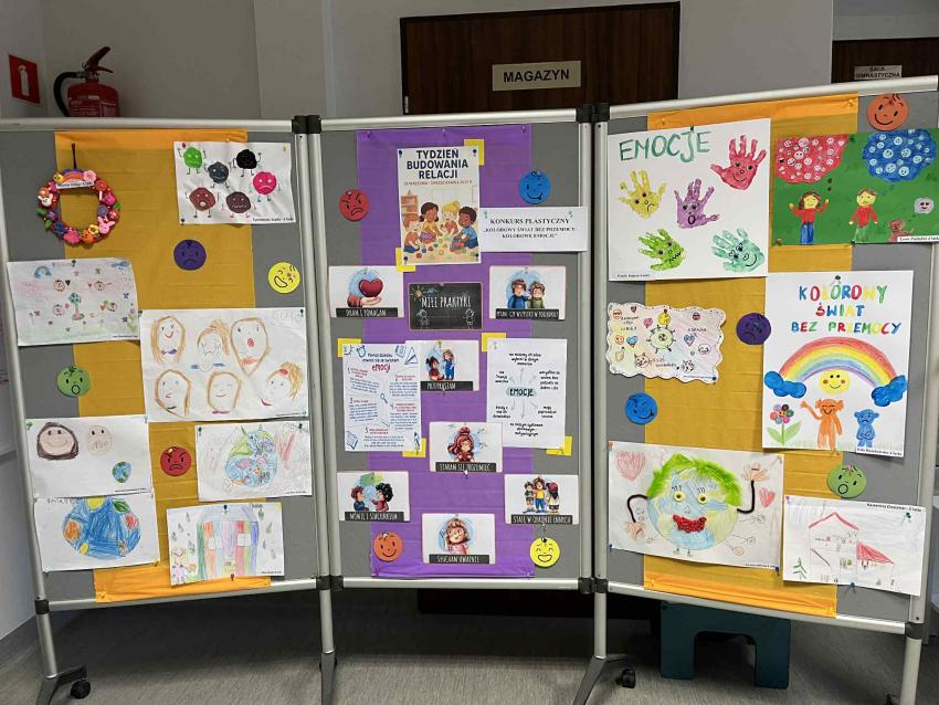 W naszym przedszkolu odbył się konkurs plastyczny - Kolorowy świat bez przemocy, kolorowe emocje, przeznaczony dla chętnych dzieci. Uczestnicy z zaangażowaniem tworzyli kolorowe prace, które w ciekawy sposób ukazywały różne emocje i nastroje. Wszystkie dzieła można podziwiać na przedszkolnej wystawie. Gratulujemy pomysłowości i twórczego podejścia!
