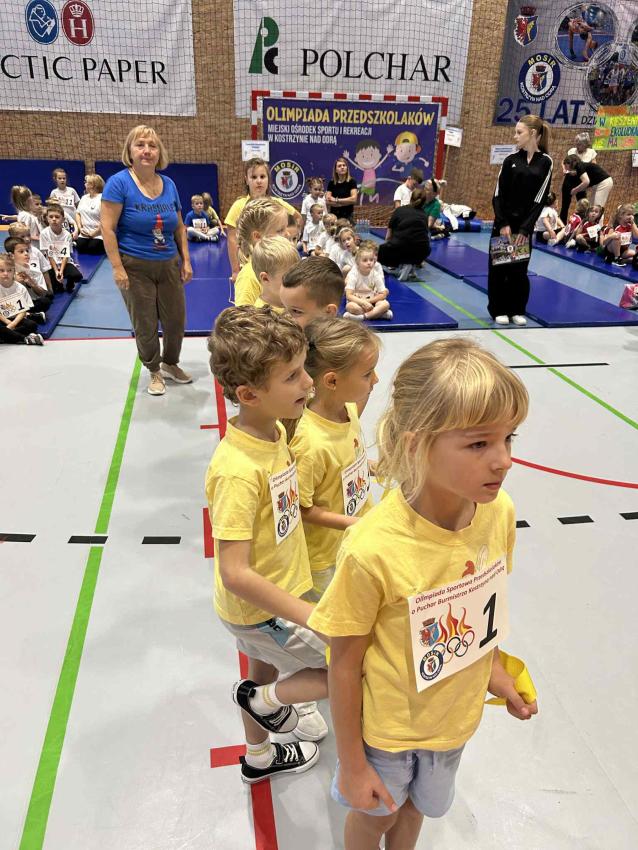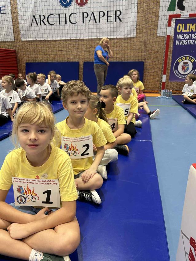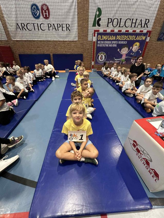 W dniu 24 października 2025 roku na hali sportowej przy Szkole Podstawowej nr 1 odbyła się Olimpiada Sportowa przedszkolaków o Puchar Burmistrza Miasta Kostrzyn nad Odrą. Udział wzięło 8 drużyn reprezentujących miejskie placówki oświatowe. To wyjątkowe wydarzenie miało na celu promowanie aktywności fizycznej. Nasza drużyna uzyskała 6 wynik, co jest powodem do dumy, gdyż dzieci naprawdę się starały i mimo stresu i wysiłku dokończyły wszystkie konkurencje. Wspierali nas wspaniali kibice, koledzy i koleżanki z grupy, rodzice, dziadkowie oraz rodzeństwo. Dzieci zadowolone z medalami na piersi wróciły do przedszkola, na długo ten dzień pozostanie w ich pamięci. Dziękujemy organizatorom oraz wszystkim osobom, które przyczyniły się do zorganizowania takiego wspaniałego wydarzenia. Gratulujemy zwycięzcom i dziękujemy za super zabawę.