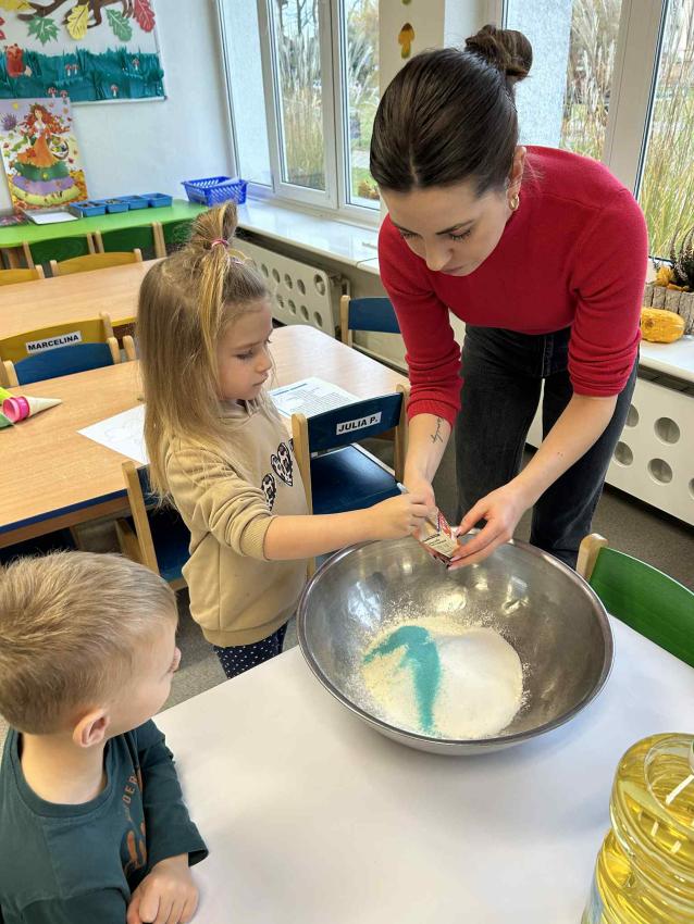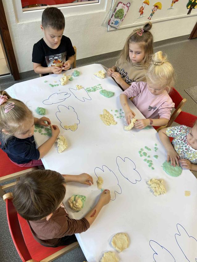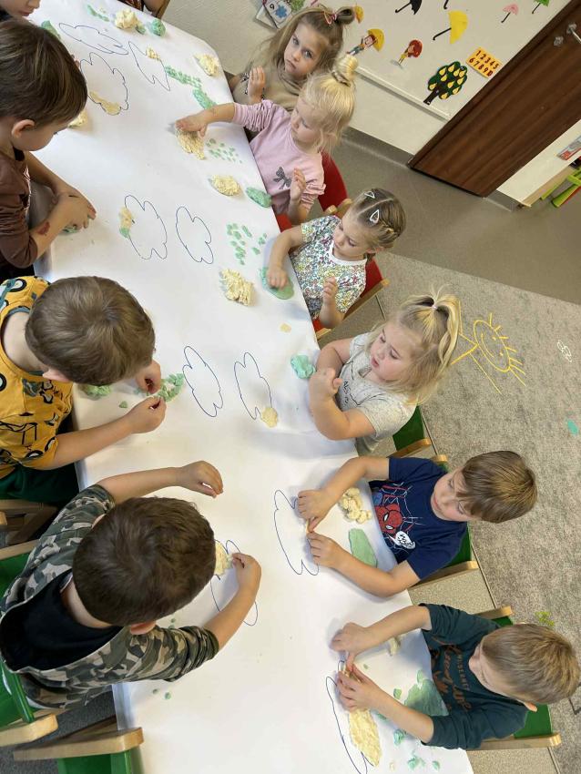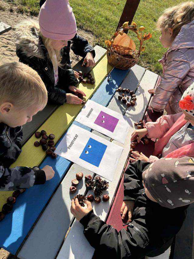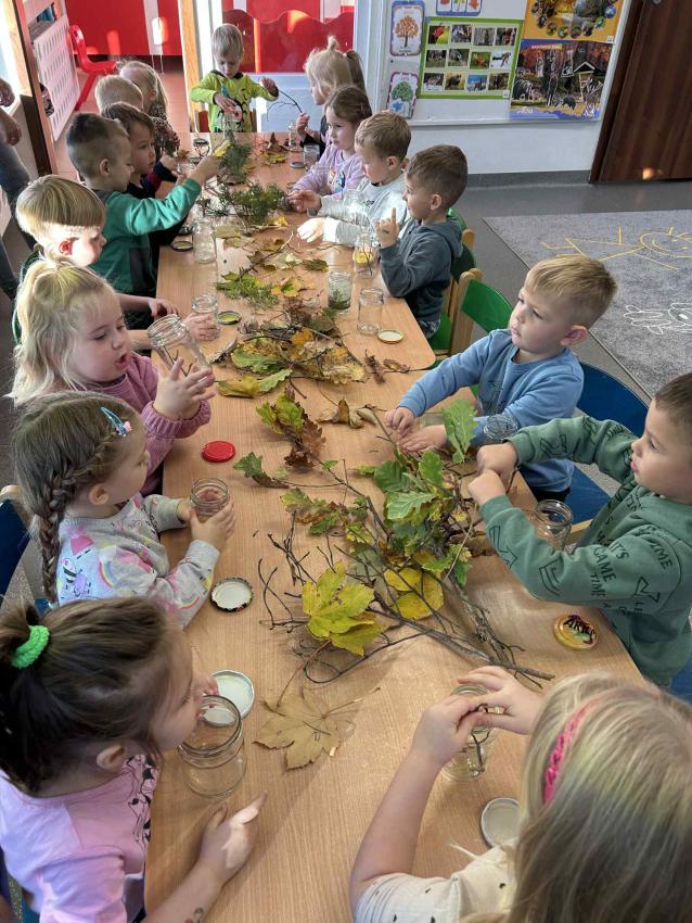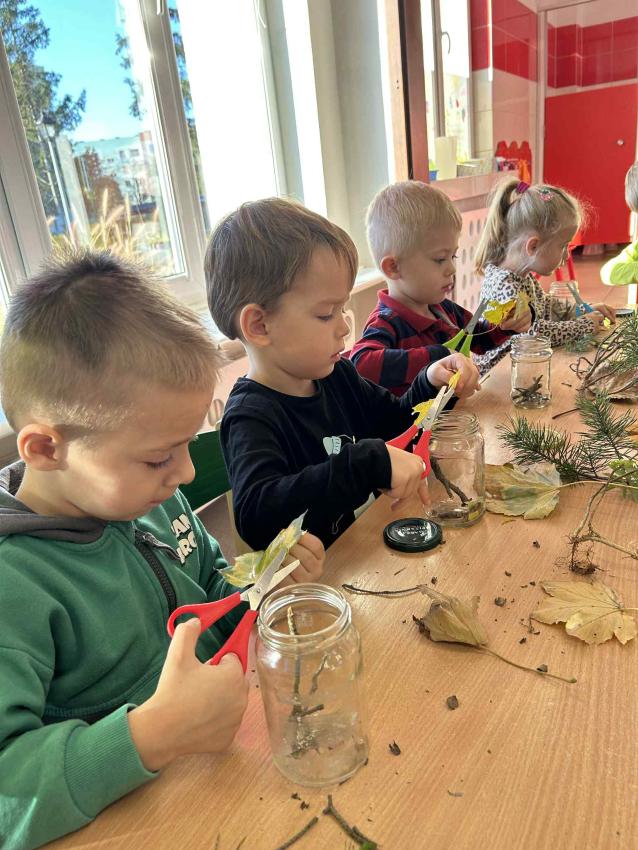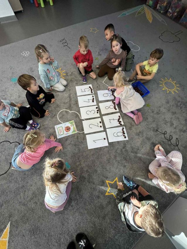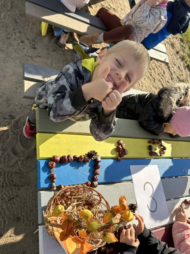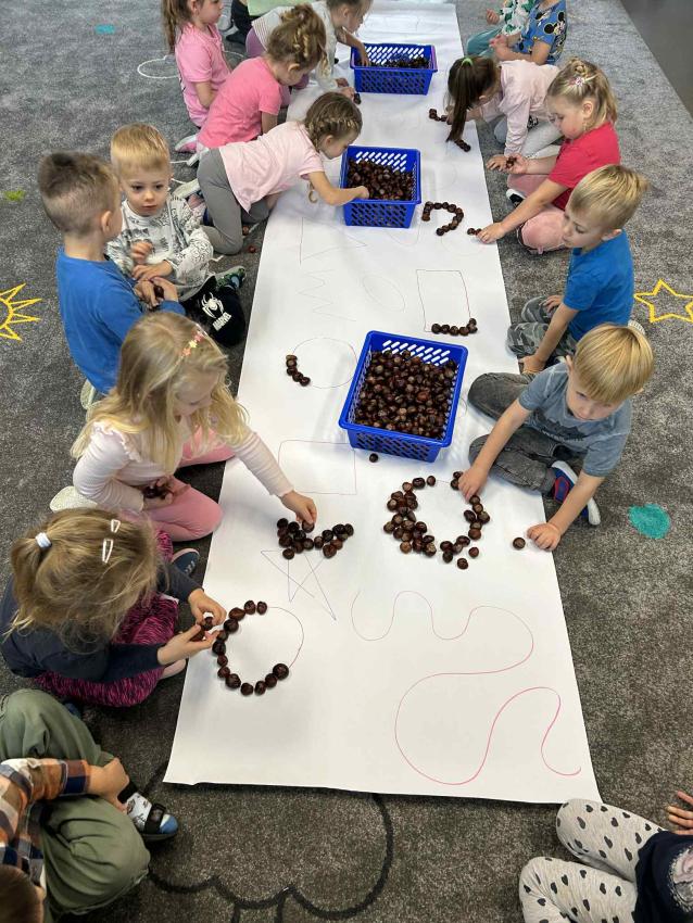 Od początku roku przedszkolnego grupa 4 latków aktywnie wykonuje zadania z projektów edukacyjnych: ,,Małe rączki-wielkie możliwości, czyli sensoryczna droga do sprawności? i ?Matematyka w darach natury ukryta?. Zajęcia mają na celu wspieranie rozwoju motoryki małej, koordynacji wzrokowo?ruchowej oraz sprawności manualnej dzieci poprzez działania oparte na integracji sensorycznej, rozwijanie dziecięcego myślenia matematycznego poprzez bezpośredni kontakt z naturą, działanie, doświadczanie i zabawę. Najważniejsze jest to, że nauka odbywa się przez zabawę, w przyjaznej atmosferze i bez presji. Każde dziecko może odkryć swoje możliwości i cieszyć się sukcesami ? zarówno tymi małymi, jak i dużymi.
