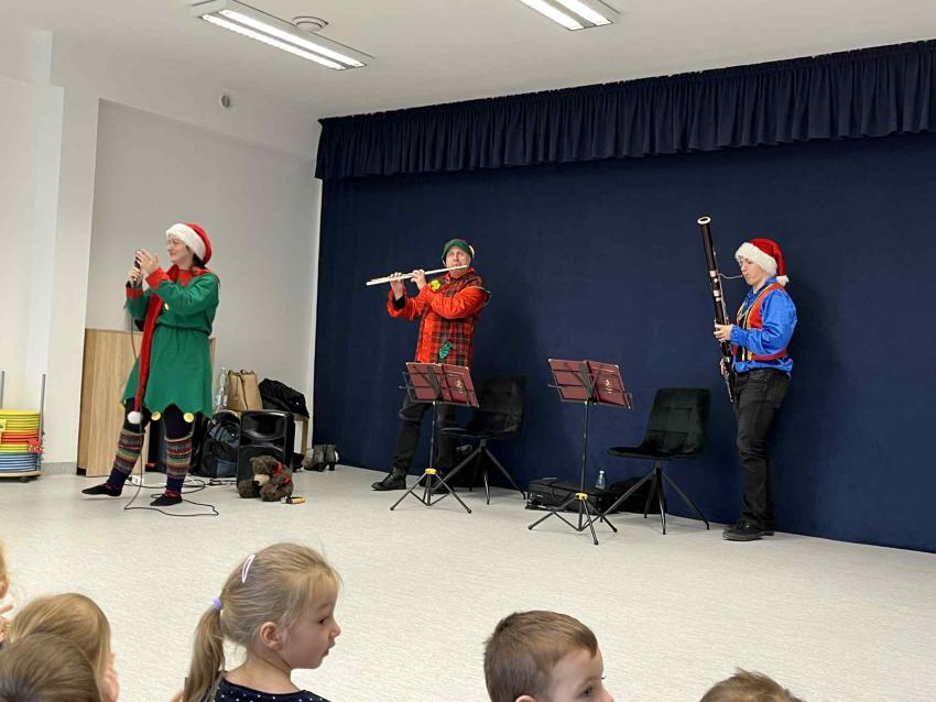 W naszym przedszkolu odbył się koncert muzyczny, podczas którego dzieci miały okazję poznać takie instrumenty jak fagot oraz flet poprzeczny. Spotkanie dostarczyło wielu muzycznych wrażeń i radości.