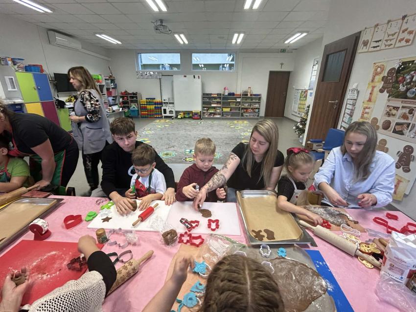 12.12.2025 przedszkolaki z grupy ,,Krasnali? wraz z najbliższymi piekły pierniki. Nagle w całym przedszkolu zaczął unosić się słodki zapach korzennych pierników, przywołujący na myśl wiele miłych skojarzeń. Wspólne pieczenie i dekorowanie pierników było doskonałą zabawą, zwłaszcza, że w pracach pomagali nam rodzice, rodzeństwo oraz babcie. Dziękujemy wszystkim obecnym na zajęciach i za pomoc w wypiekach i za wspaniale spędzony wspólny czas.