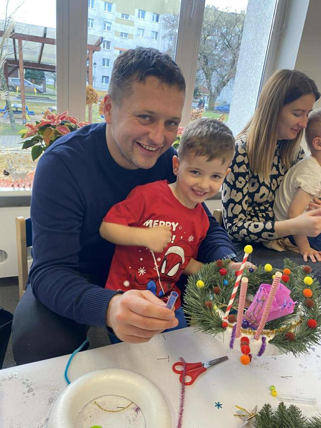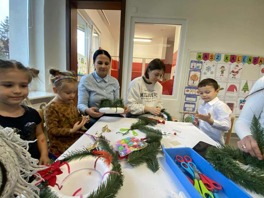 Dnia 18.12.2025 w grupie 4 latków odbyły się zajęcia otwarte. Zaproszeni Rodzice wspólnie ze swoimi pociechami tego dnia wykonali stroiki bożonarodzeniowe. Małą niespodzianką dla przybyłych gości był zaprezentowany przez dzieci występ. Tego dnia w naszej sali można było poczuć prawdziwie świąteczną atmosferę. Rękodzieła wyszły piękne i oryginalne. Dziękujemy wszystkim za wspólną integrację i świetną zabawę!
