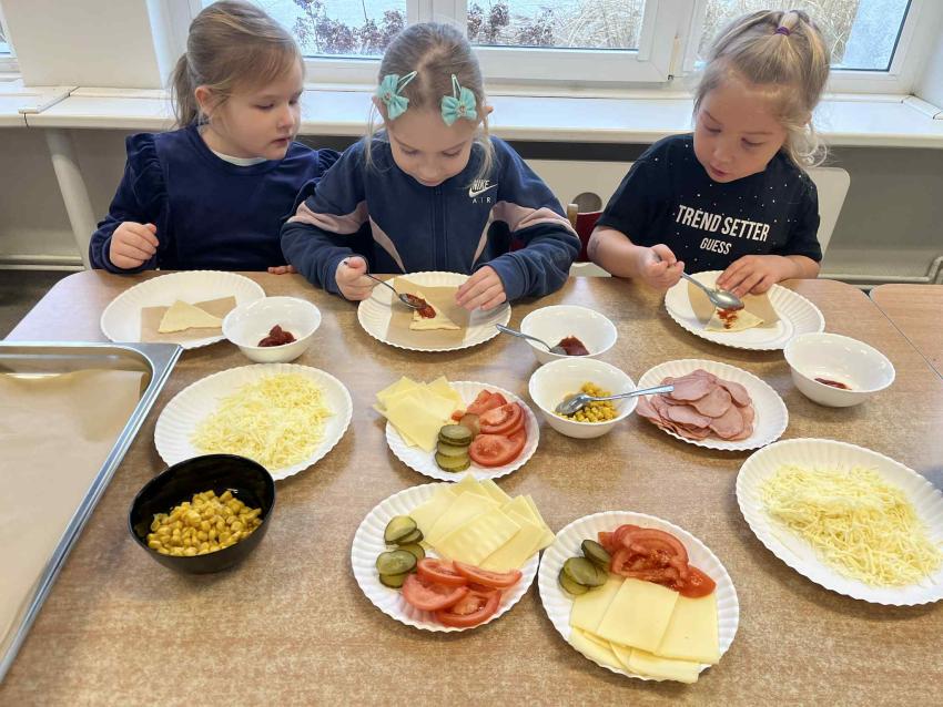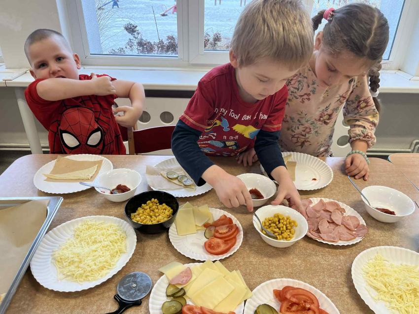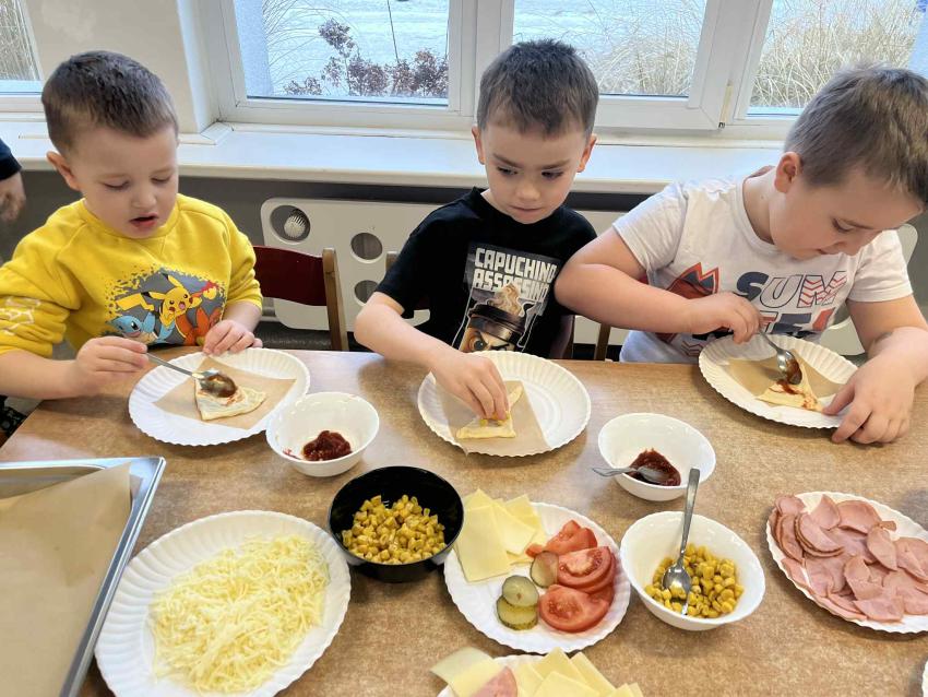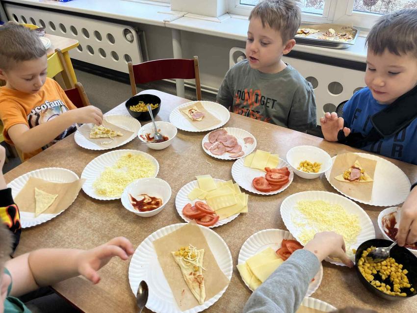 W poniedziałek dzieci z grupy 5- i 6-latków obchodziły Dzień Pizzy. Przedszkolaki brały udział w wesołych zabawach, poznały składniki potrzebne do przygotowania pizzy oraz samodzielnie nakładały je na ciasto.