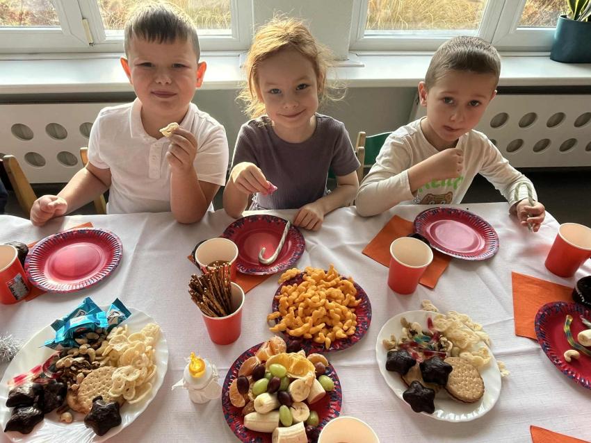 Świąteczny dzień w naszym przedszkolu rozpoczął się występem jasełkowym przygotowanym przez grupę pięciolatków. Następnie odbyła się uroczysta Wigilia, podczas której dzieci wspólnie spędziły czas w świątecznej atmosferze. Na zakończenie każda grupa otrzymała nowe zabawki do sal, przekazane przez Panią Dyrektor. Dzieci mogły bawić się nimi już tego samego dnia, co sprawiło, że był to wyjątkowy i radosny czas.