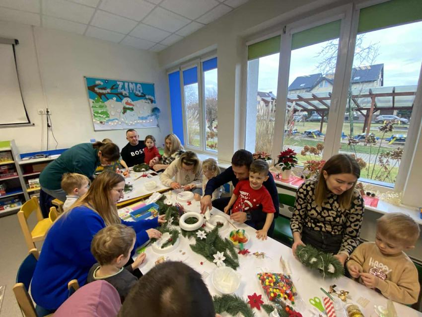 Dnia 18.12.2025 w grupie 4 latków odbyły się zajęcia otwarte. Zaproszeni Rodzice wspólnie ze swoimi pociechami tego dnia wykonali stroiki bożonarodzeniowe. Małą niespodzianką dla przybyłych gości był zaprezentowany przez dzieci występ. Tego dnia w naszej sali można było poczuć prawdziwie świąteczną atmosferę. Rękodzieła wyszły piękne i oryginalne. Dziękujemy wszystkim za wspólną integrację i świetną zabawę!