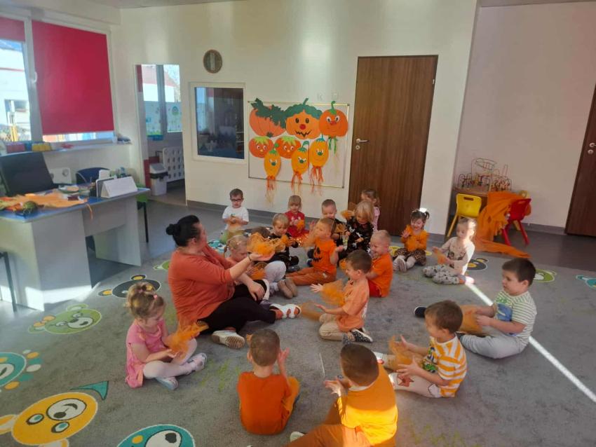 Dzieci poznały różne odmiany dyni, dowiedziały się, do czego można ją wykorzystać i jak wygląda w środku. Nie zabrakło zabaw ruchowych, konkursów i prac plastycznych, w których dynia była główną bohaterką.