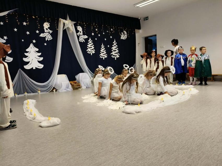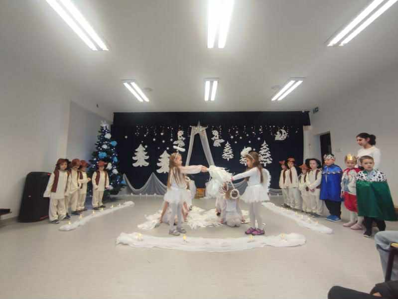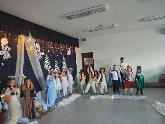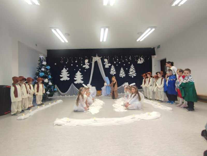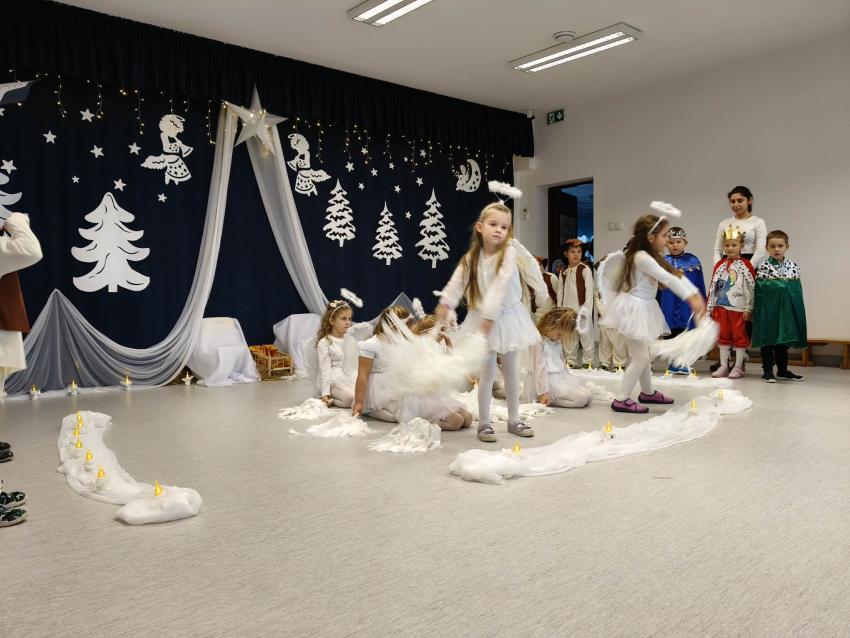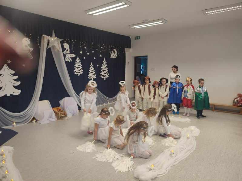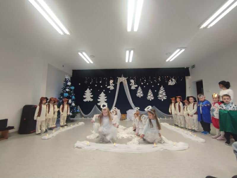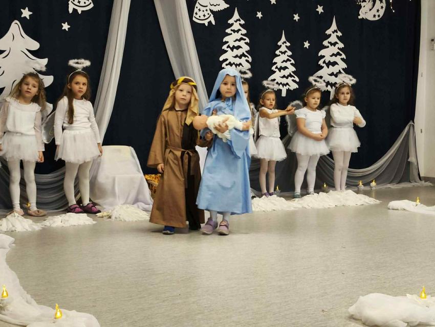 Nasze pięciolatki przygotowały świąteczne jasełka, które najpierw zaprezentowały rodzicom, a następnego dnia uczniom klasy trzeciej ze Szkoły Podstawowej nr 2. Dzieci spisały się wspaniale, pięknie recytowały, śpiewały i stworzyły prawdziwie świąteczną atmosferę. Dziękujemy wszystkim za obecność i ciepłe przyjęcie.