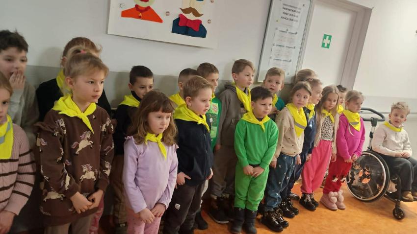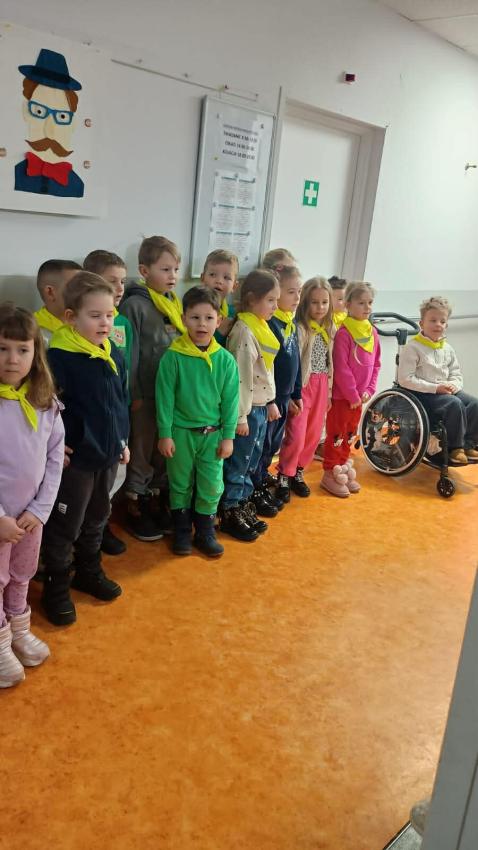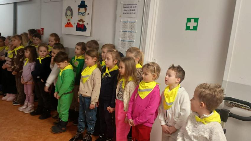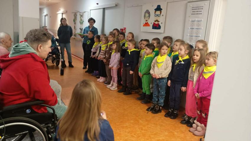 22.01.2026 grupa dzieci 6-letnich wybrała się do Domu Seniora. Z okazji Dnia Babci i Dziadka dzieci przygotowały krótki występ i laurkę dla Dziadków i Babć, podopiecznych placówki. Dziękujemy, za zaproszenie. Jesteśmy szczęśliwi, że mogliśmy znów odwiedzić seniorów i tym samym pogłębiać więzi społeczne nie zważając na wiek. To wspaniała lekcja wdzięczności dla dzieci, jak i Seniorów. Jeszcze raz dziękujemy i mówimy: ,,Do zobaczenia!?